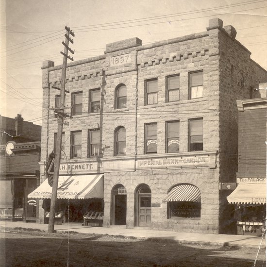Robert was the youngest son of John Kerr Brydon and Mary Charlotte Campton of Kenora, Ontario. John had emigrated from Scotland around 1875 and he spent some time in Chicago, Winnipeg and Toronto before settling in Rat Portage, Ontario in 1882. He married Mary in Toronto in August 1886 and the couple made their home in Rat Portage (later renamed Kenora). They had three children: John Campton (1887), Marie Isabella (1888), and Robert George Howie, who was born on Christmas Day in 1891. John was a lawyer and he served as a town councillor for two years and as town clerk from 1887 to 1899. He was also involved in the construction of local buildings including the Brydon Block, a stone building that still stands in downtown Kenora.