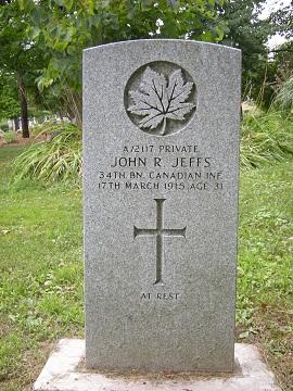 Next of kin: Charles Jeffs, brother. 86 McNaughton Street, Galt, Ontario