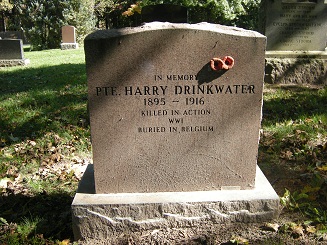 Died of Wounds April 25, 1916 No 6 Field Ambulance Station; Private; Born in Galt; Age 22; Spent some time in the UN [United States] - returned from Flint, Michigan to enlist; Enlistment October 28, 1914 with the Western Ontario Battalion; Occupation - Machinist; Son of Mrs. Mary Drinkwater; 177 Water Street, South, Galt; Mother had just received a letter written April 15 in which he told of having successfully gone through an engagement lasting seven days and six nights during which time he was never off duty. Battle referred to was probably St.Eloi. operated on in England for appendicitis; first Galt man to ride in the City of Galt ambulance; went into the trenches September 15, 1915; never wounded before April 25; two brothers serving William with the 29th Battery of the 11th Howitzer Brigade, now in England, Andrew, a bugler with the 111th Battalion. Other survivors - brother Lorne at home; Four sisters, Mrs. Henry Robertson - Mrs. Bullock – Mrs. Glennnie - and Louise all of Galt.